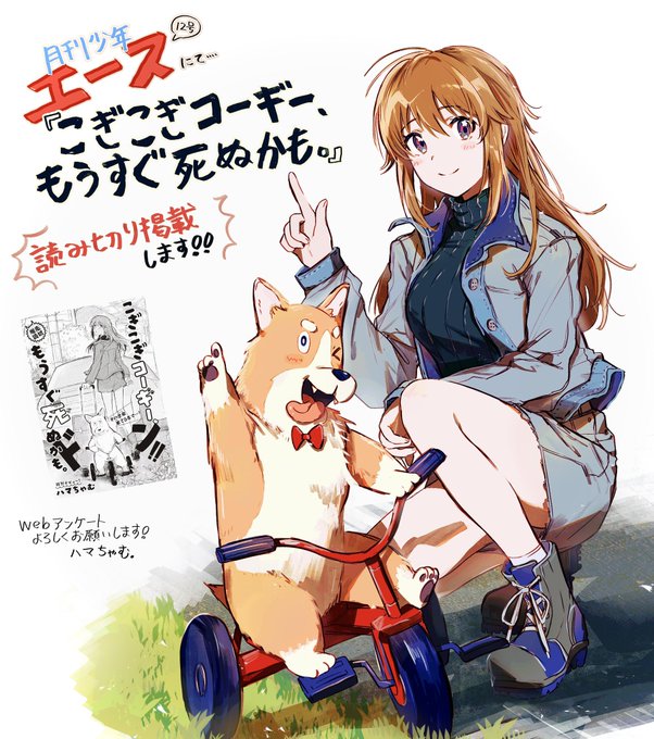 170 555 ✨お知らせ✨ なんと、今月発売の月刊少年エースにて「こぎこぎコーギーもうすぐ😇ぬかも。」を読み切り掲載します❗️ 飼い主を追いかけるため、コーギーが三輪車に乗って爆走するお話です。 ぜひよろしくお願いします…! 22/10/24 18:57