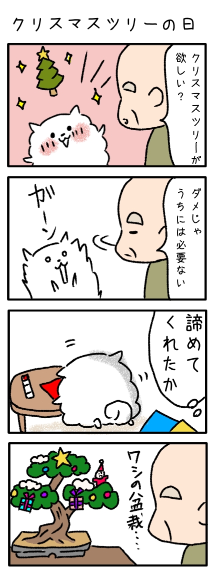 おはポメ꒰ ՞•ﻌ•՞ ꒱ 12月7日(水)クリスマスツリーの日 とうとう買った!卓上ツリー!うかれるぞ!家で! 寒いけど我慢できる寒さ!いい日! #漫画が読めるハッシュタグ #イラスト好きさんと繋がりたい #四コマ漫画 #ゆるいイラスト #ポメラニアン #クリスマスツリーの日
