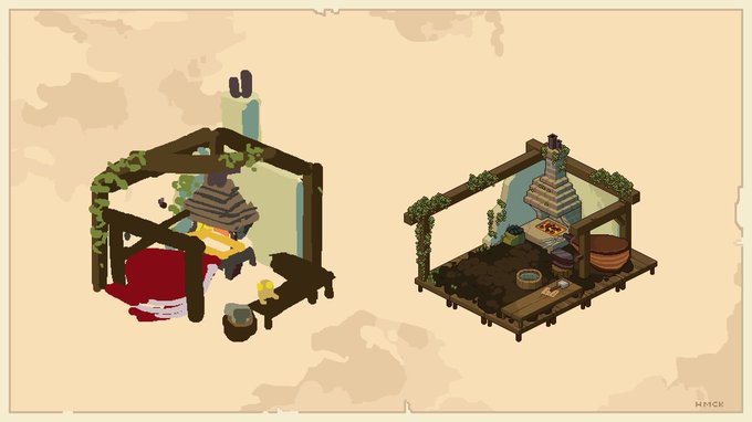 Last but not least, the hunter's hut🐊Hope you had a nice September month! Follow @LaGrangeDev for an in game version of this building (coming soon) Until we meet again💀 #ドット絵 #pixelart #indiegame #alligator #hunter