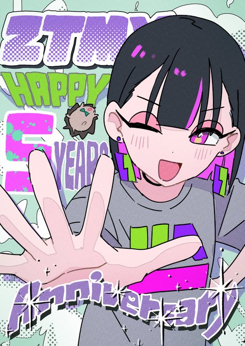 305 2639 おそばせなばら! 5周年おめでとうございます🦔💟 #ずとまよ5周年 #ずとまよファンアート 23/06/05 19:05