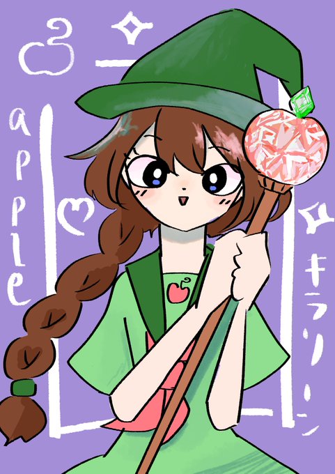 2 14 りんごさんver.HALLOWEEN キラキラの杖を持つ魔女っ娘のりんごさんだー! かわいい! #イラスト #ハロウィンイラスト2022 22/10/31 23:53