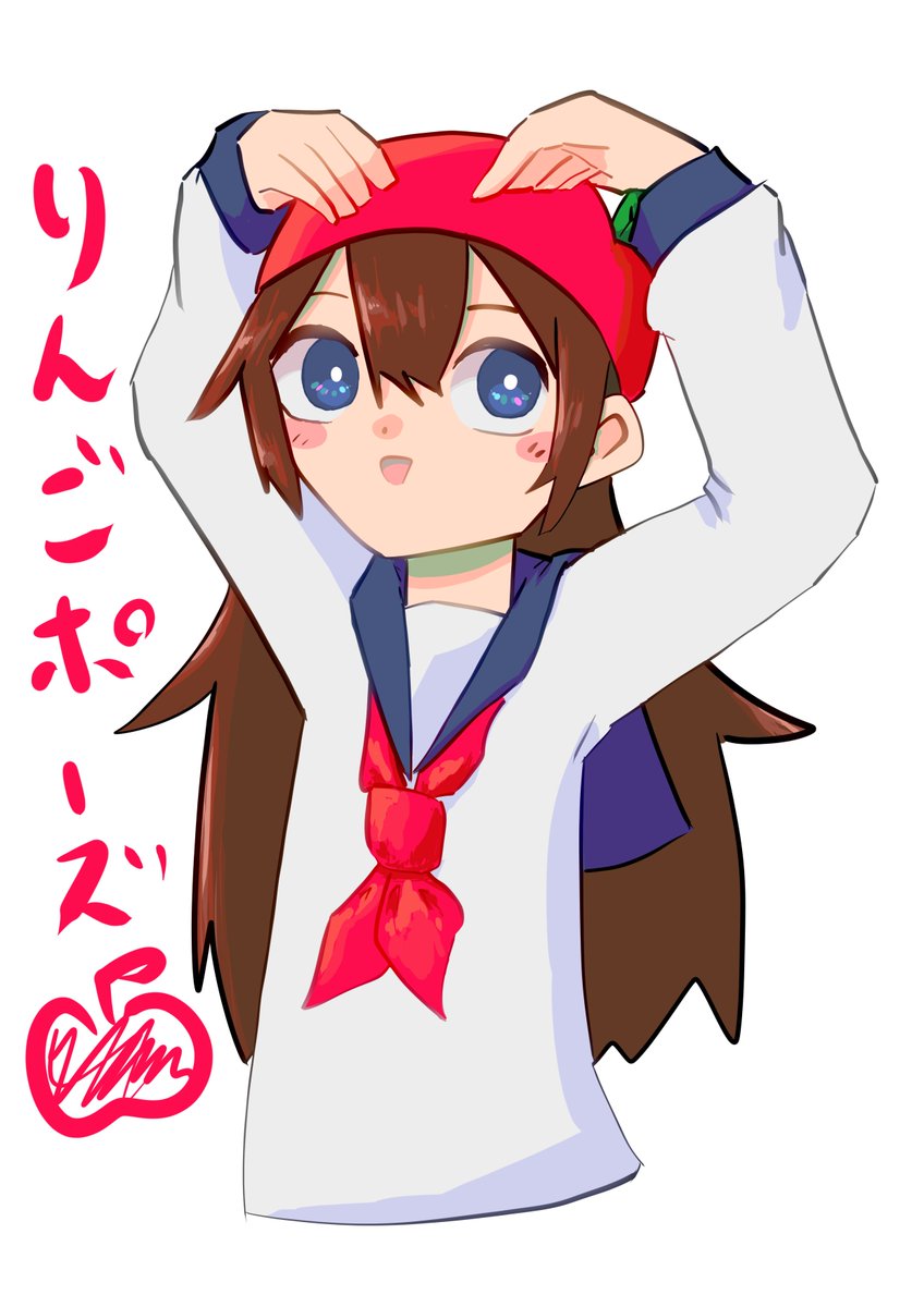りんごポーズするりんごさんかわいい!! #イラスト