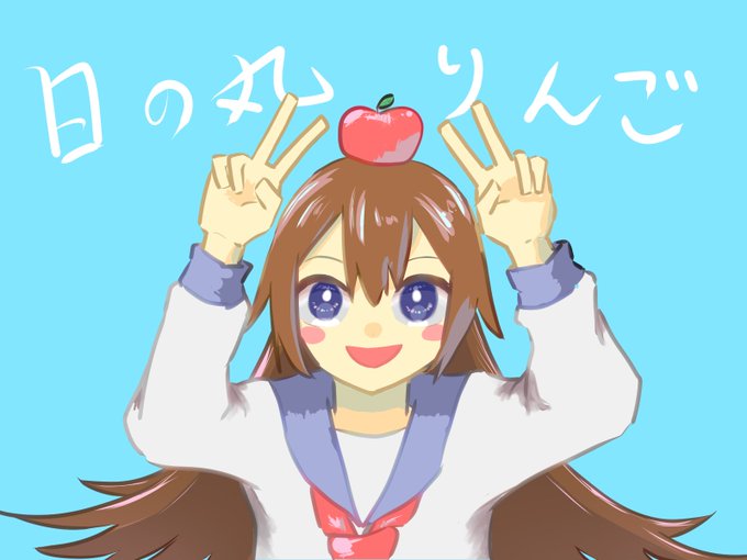 日の丸印なりんごさんかわいい!! #イラスト