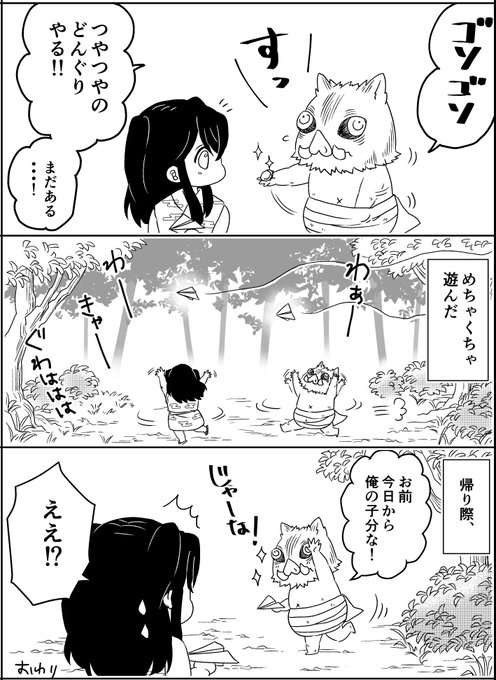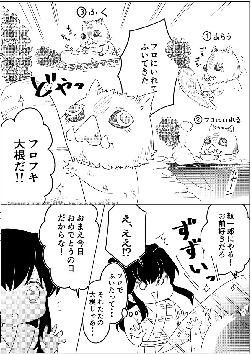伊之助ちゃんが義勇さんの誕生日を祝いに来る漫画再掲です!義勇さんおめでとう~🐗 #冨岡義勇生誕祭2023 #冨岡義勇誕生祭2023