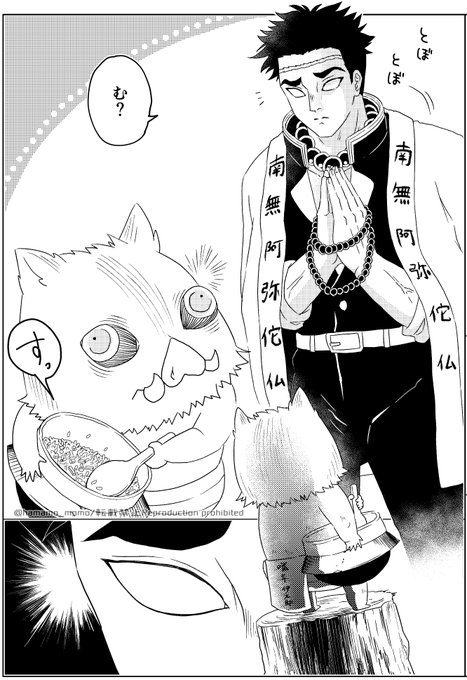 147 2377 伊之助ちゃんが悲鳴嶼さんをお祝いする漫画🐗 悲鳴嶼さん誕生日おめでとう🎉(2/2) 23/08/23 00:03