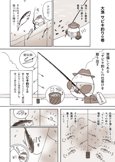 4 18 第3話:大漁 サビキ釣りの巻 #ずんぐりウミネコ釣果帳 #漫画が読めるハッシュタグ #漫画 #釣り #ゆるいイラスト 22/10/17 23:06