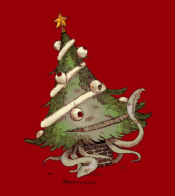 10 64 #人外版深夜の真剣お絵描き60分一本勝負 「アナタが考えるクリスマスカラーを用いた人外」 「“触手”から連想する人外」 「多眼」 20/12/19 00:01