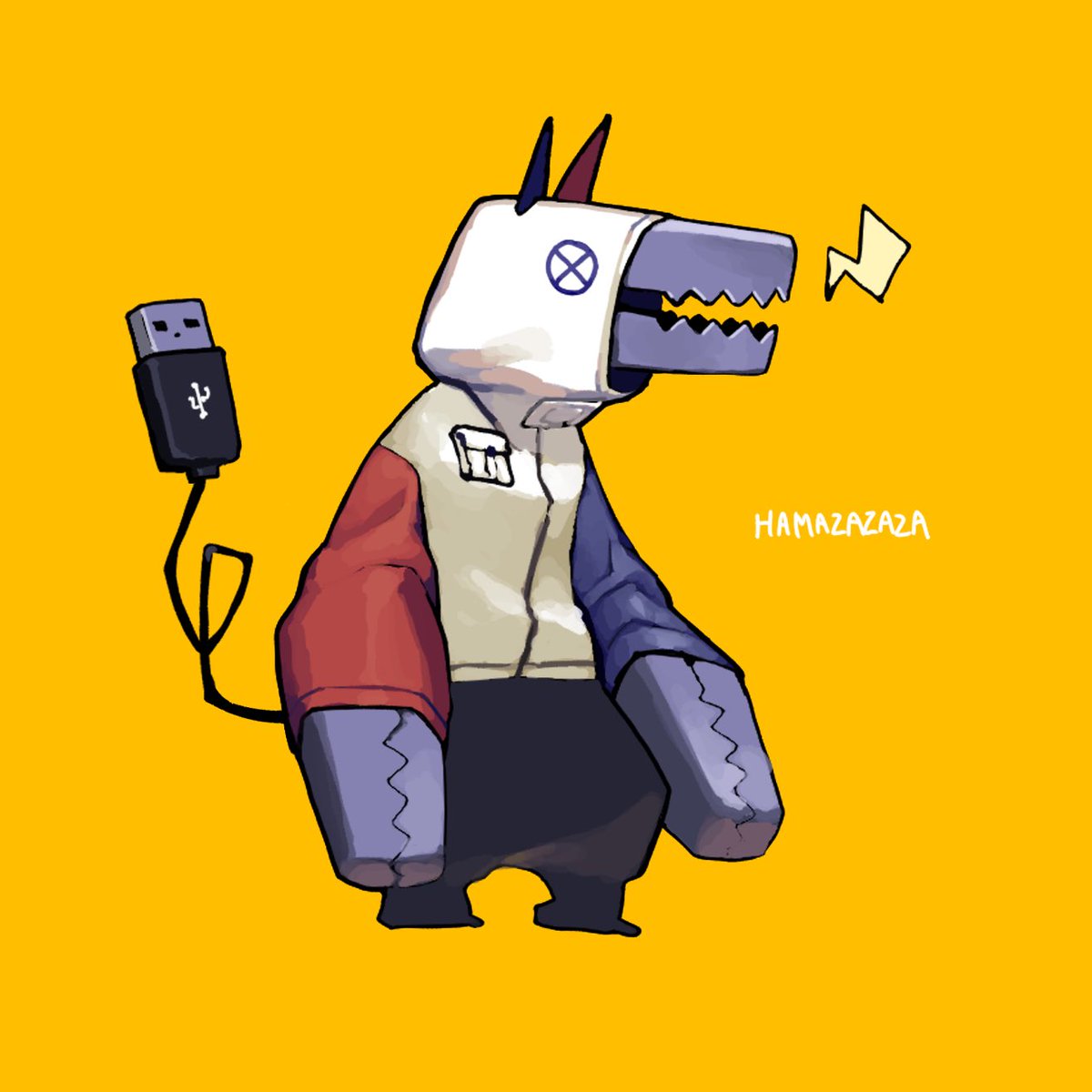 #人外版深夜の真剣お絵描き60分一本勝負 「アナタが考える電気を発する人外」 ワニ口クリップくん