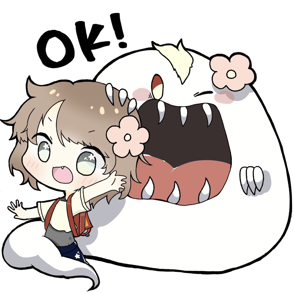 1 5 OK!!!!LINEスタンプ風味 おばけのはなちゃんと女の子( ơ ᴗ ơ )🌸 #デジタルイラスト 22/08/28 00:13