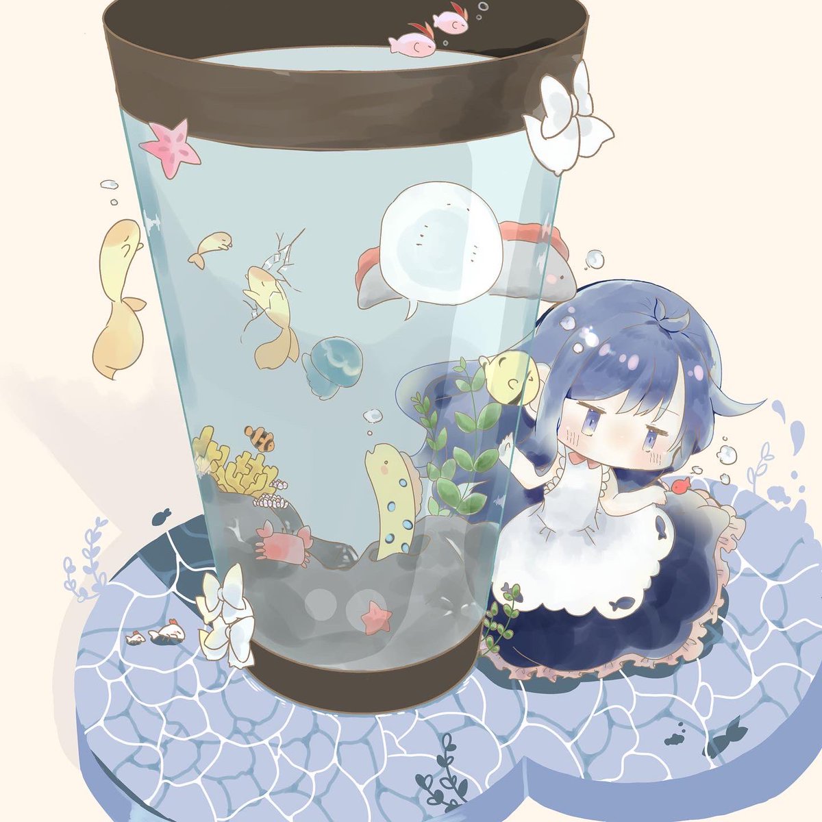 おさかなと仲良しアクアリウム #デジタルイラスト #絵柄が好みっていう人にフォローされたい