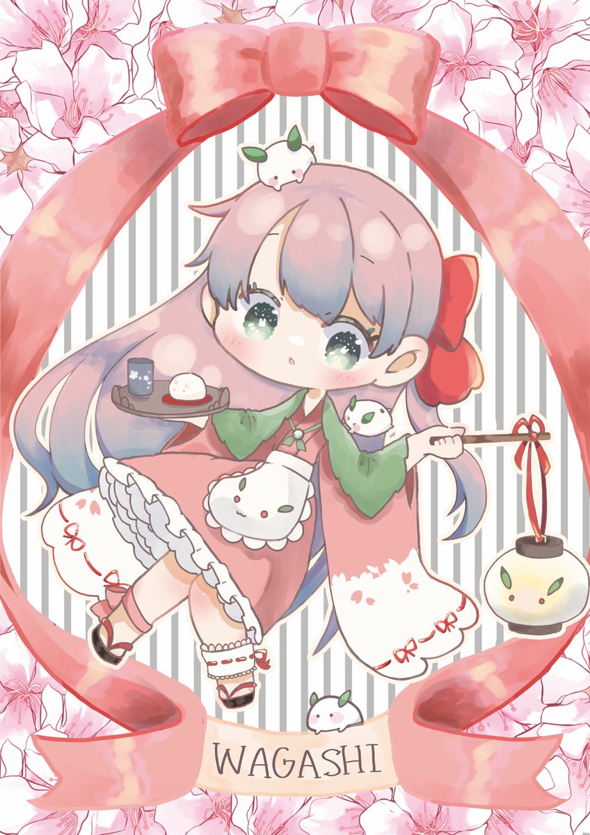 うさぎの和菓子をモチーフに女の子描きました⸜(* ॑꒳ ॑* )⸝⋆*✨ 大きなおリボンがお気に入り🎀🎀 #絵描きさんと繋がりたい #絵柄が好みって人にフォローされたい