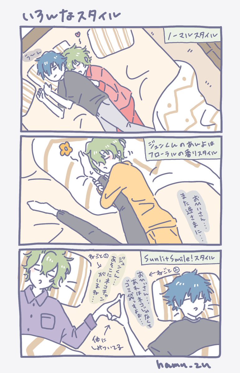 ジュンひよちゃんのいろんな寝相style…☺️ひよちゃんは同室のメンメーンがいてもお構いなしにじゅんじゅを部屋に連れ込む…☺️(じゅんじゅは普通に自分の部屋で寝たいよ…☺️)でもこのジュンひよちゃんはチューすらまだしてないぴゅあっぴゅあカップルなので同室のメンメーンも安心だよ…☺️