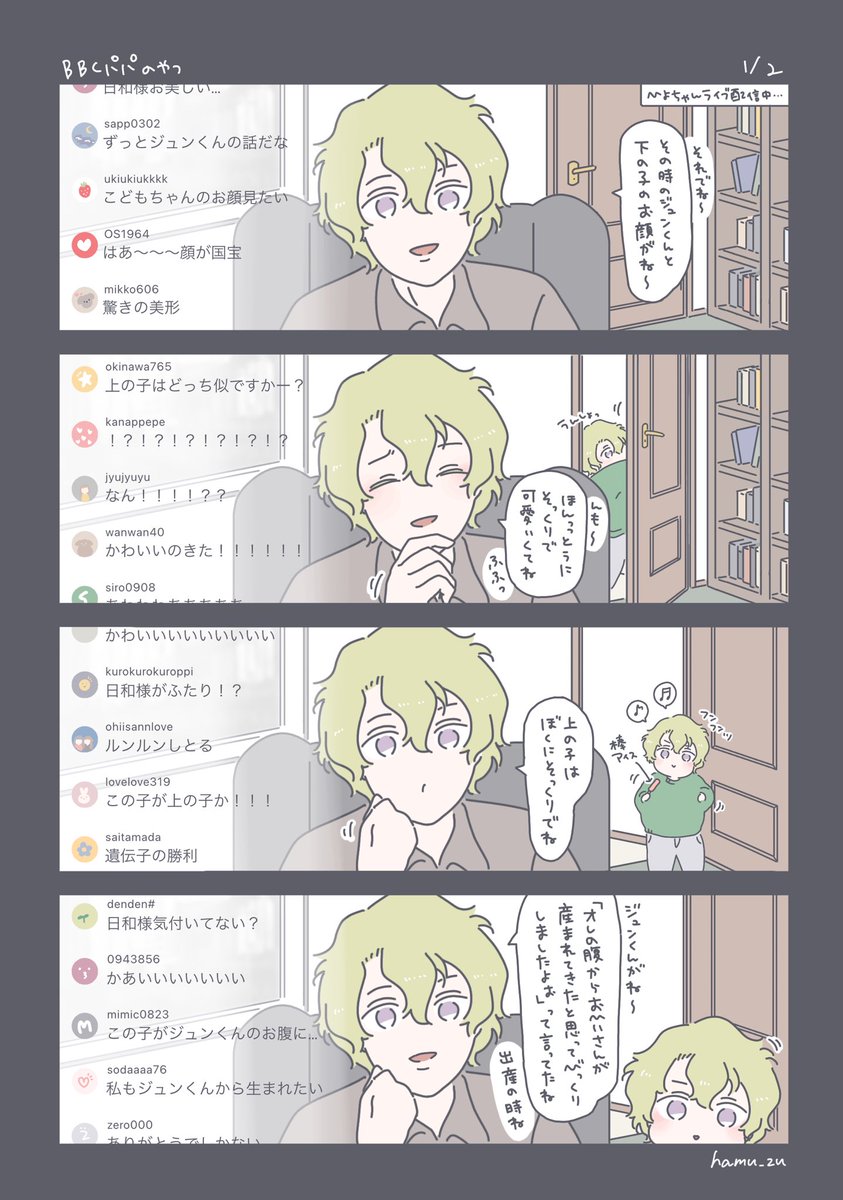 ひよジュンちゃん家族パロ…☺️元ネタとってもかわいいので見たことない方はゆうちゅ〜ぶで見てみてね…☺️ (びーびーしーぱぱで検索するとでてくるよ☺️)