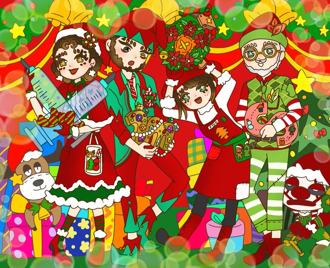 💉🔦🎅Merry Christmas🎄🧰🗺️ 初期メンクリスマス衣装揃った(🗺️?) 可愛い衣装!エマちゃんも実装してほしい!! 素敵な1日になりますように✨ #第五人格イラスト