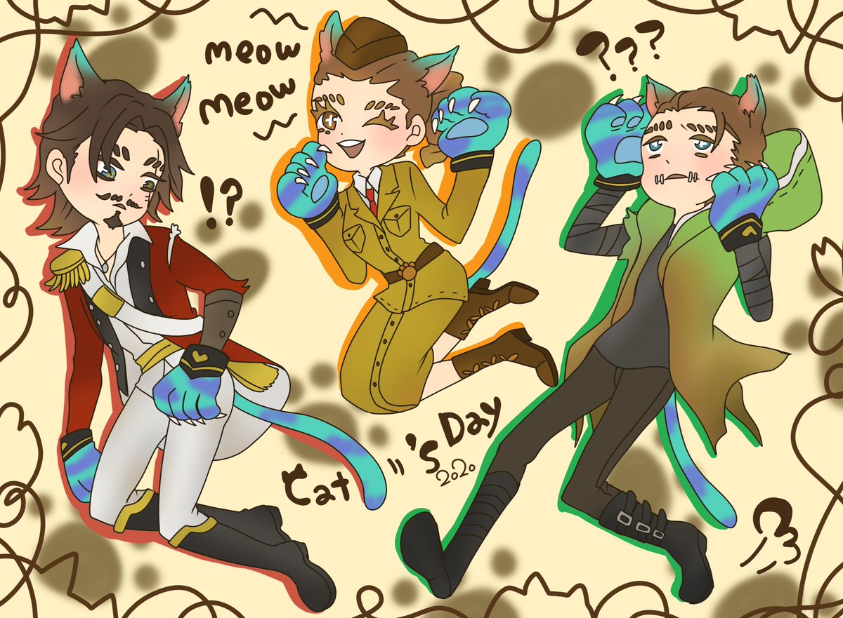 5 23 最近ランクマ、マルチで活躍してくれる三人で猫の日🐈🐾 いつもありがとー!!⚓🔫🤕✨ #荘園でも猫の日 #第五人格イラスト 20/02/22 12:32