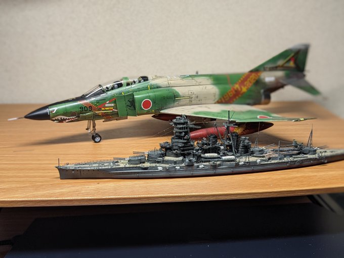 #画像を4枚晒したらrtがきてフォロワーがぶわーって増えると聞いて 過去作で失礼します┏○ペコッ 1枚目:メカコレより宇宙戦艦ヤマト 2枚目:駆逐艦雪風&航空母艦赤城 3枚目:戦艦武蔵 4枚目:F-15J ※スケールは1/700と1/72です!