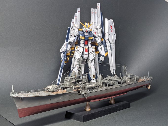 #今月作ったプラモ晒そうぜ 1/350 駆逐艦 島風 (最終時) 1/144 νガンダム RG 今月はこの2つでした(* ॑꒳ ॑* ) F-15は間に合いそうになかったのでのんびりと来月中に完成させます٩( 'ω' )و