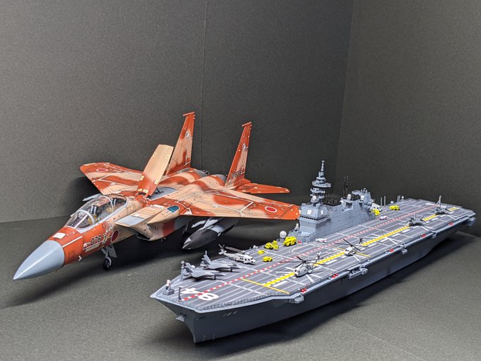 #今月作ったプラモ晒そうぜ ・1/72 F-15DJ ・1/700 護衛艦かが ・海面表現 今月は初めて時代をまたがない子達を製作しました!加えて初めて海面を作ってみたり、そんな初めて尽くしの1ヶ月でした(* ॑꒳ ॑* )