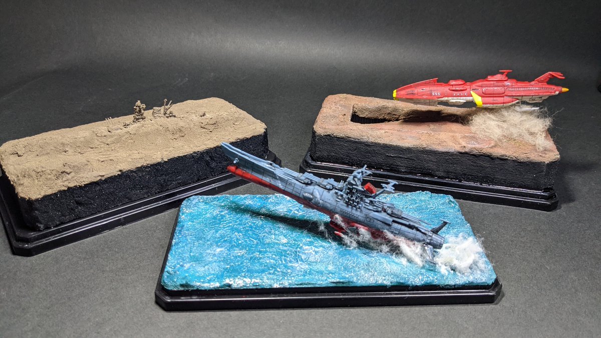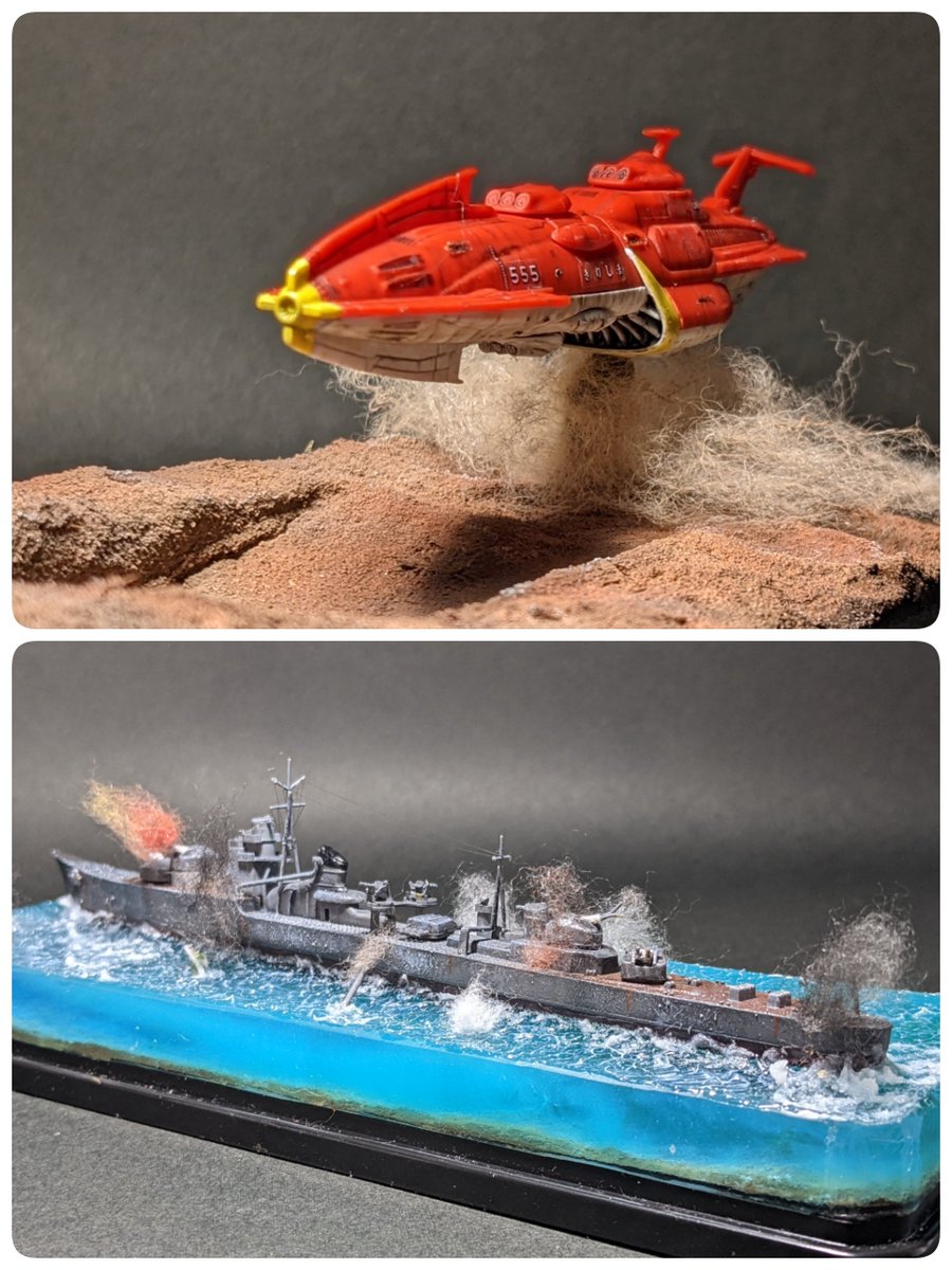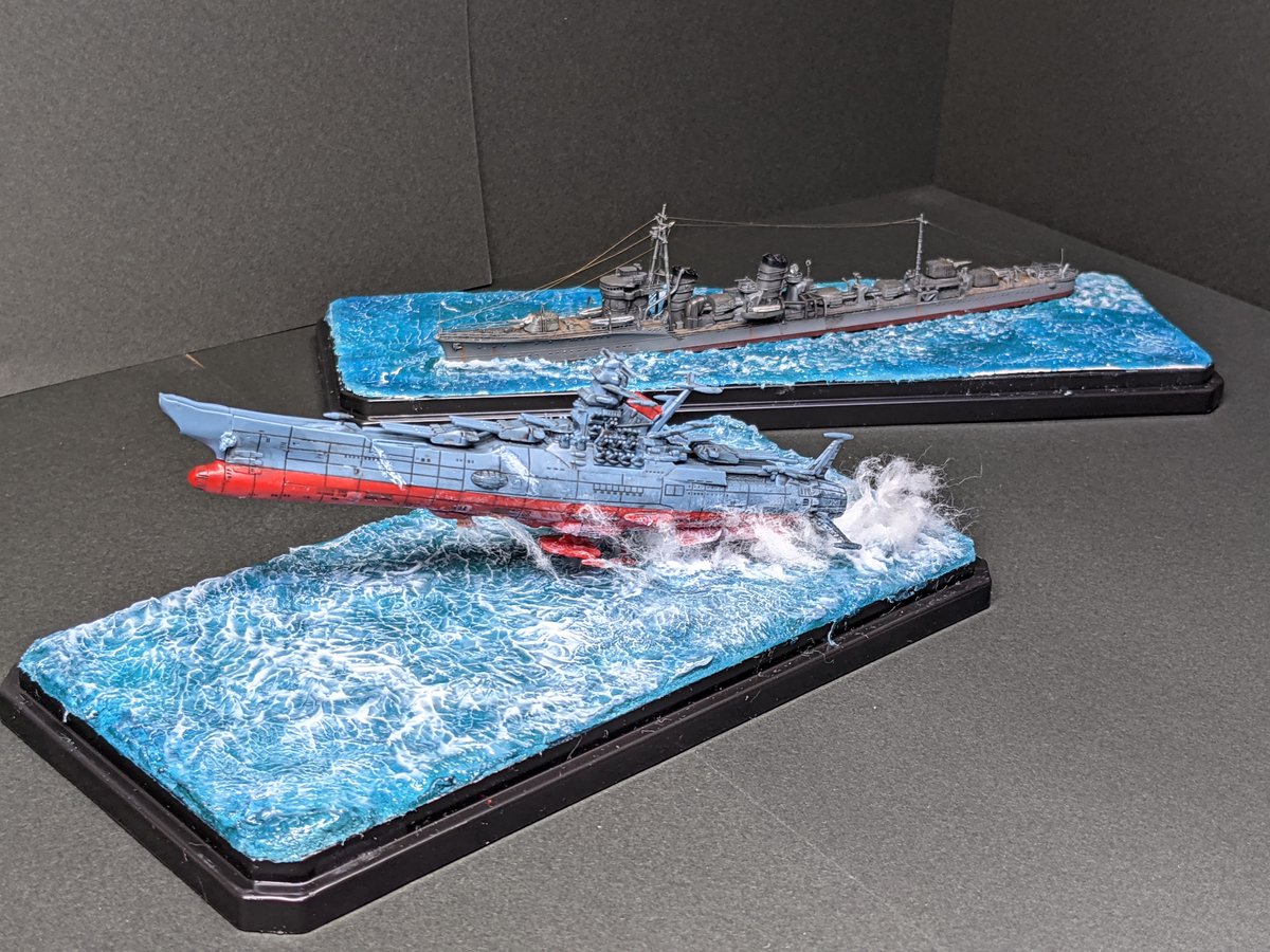 #今月作ったプラモ晒そうぜ メカコレ 金剛型宇宙戦艦 キリシマ 1/700 駆逐艦 秋月 情景をつけ始めた事によりチャレンジ精神が芽生え失敗を恐れなくなりました\( Ö )/ 今年もよろしくお願いします<(_ _)>