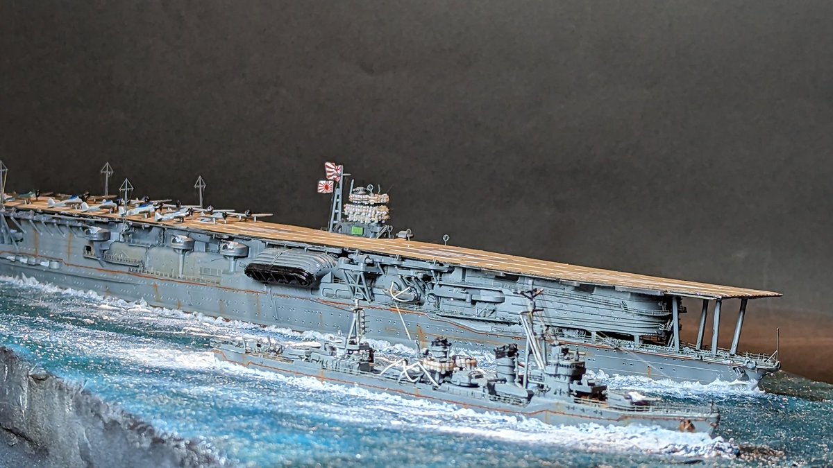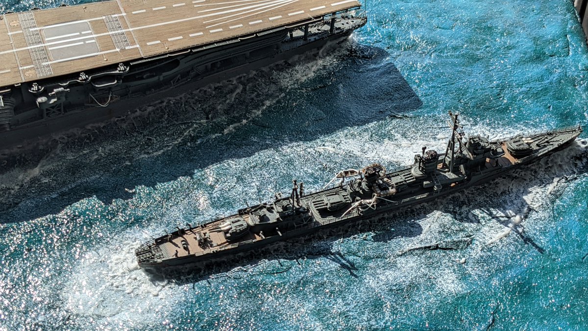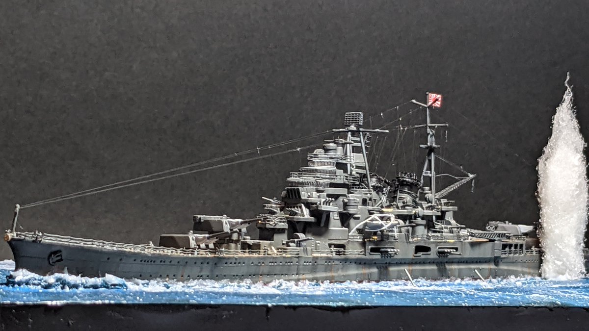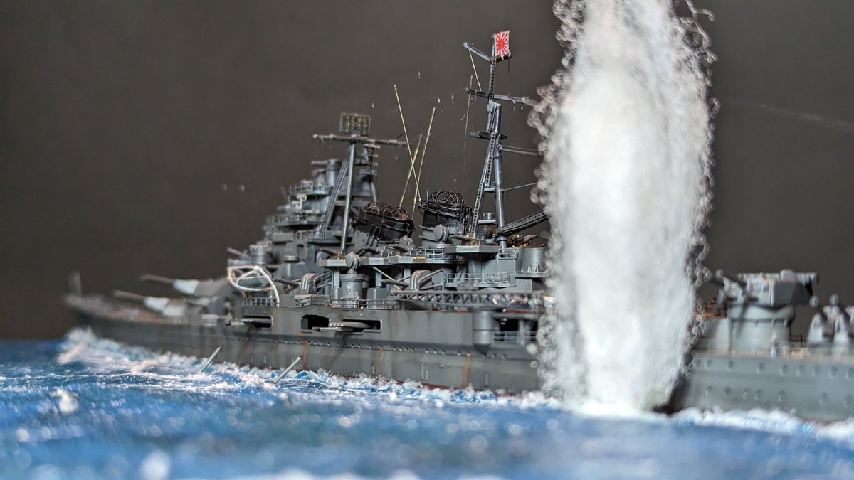 #新規フォロワーさん向けに過去作を上げてみる 1/700 戦艦武蔵 (過去作) 航空母艦赤城 (新作) 駆逐艦雪風 (新作) 過去作と新作を一緒に撮ってみました( *´ `) 史実では実現しなかった光景ですが…(°°;)