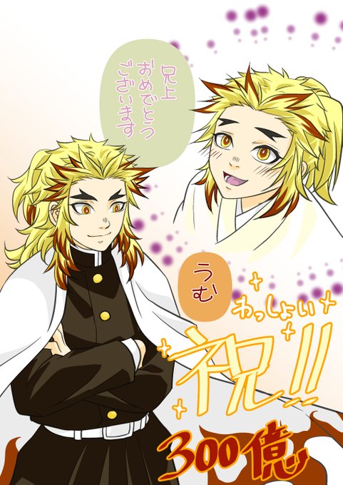 3 9 煉獄さんが300億の男になって嬉しくてしょうがないのでお祝いしたいけど、描くの遅いので手抜きになってしまって御免なさいって落書き。 300億わっしょい!!!ヾ(≧▽≦)ノ 20/12/14 23:58