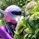 今日も暑かったっすね(^o^)その4 #ビートファイターAce #ビートファイターJack #アマビエール #秋田県 #ローカルヒーロー #通の市 #秋田市 あじさいと。 もうちと咲いてればねえ。