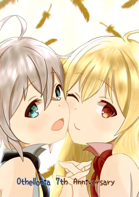 34 212 7周年おめでとうございます。 今年はフギンとムニンでお祝いイラスト描いてみました。 #オセロニアート #オセロニア7周年 23/01/30 13:08