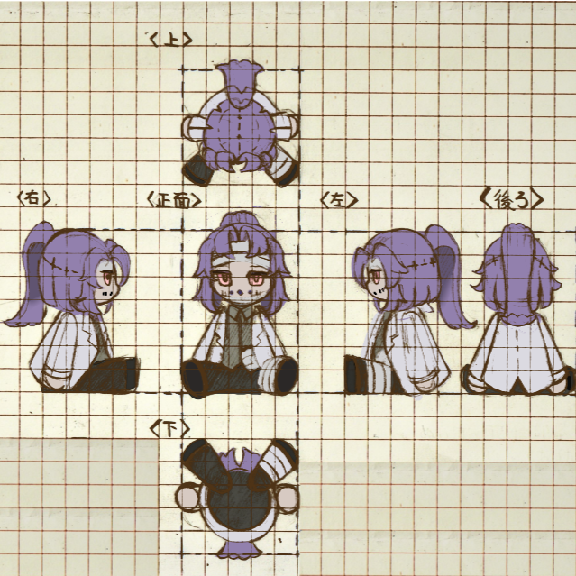 #裂けアート 見様見真似でぬいハジ六面図を描いてみました。 ツッコミどころ多々あると思いますがこういうぬいハジが見たいなという気持ちだけでも伝わればなと思います。