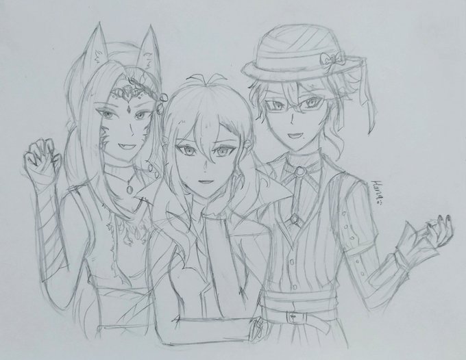 2 7 Happy Halloween people! 🎃🧡 I present they, the hoes™ /j (couldn't finish it in its digital art form so here's the unfinished vers instead 💔) #twst_oc #twstプラス #twst夢 #twst #twistedwonderland 21/10/31 11:58
