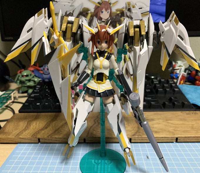 金潟すぐみ(武装モード)🪛 (造形大学に通うモデラーらしいです🪛) 素体よりはるかに時間がかかった…😂 ディティール細かいしアンダーゲートなところもあるし、RGを組んでる気分でした🎐 素組みなのに出来も素晴らしい(*´ω`) #メガミデバイス #アリス・ギア・アイギス