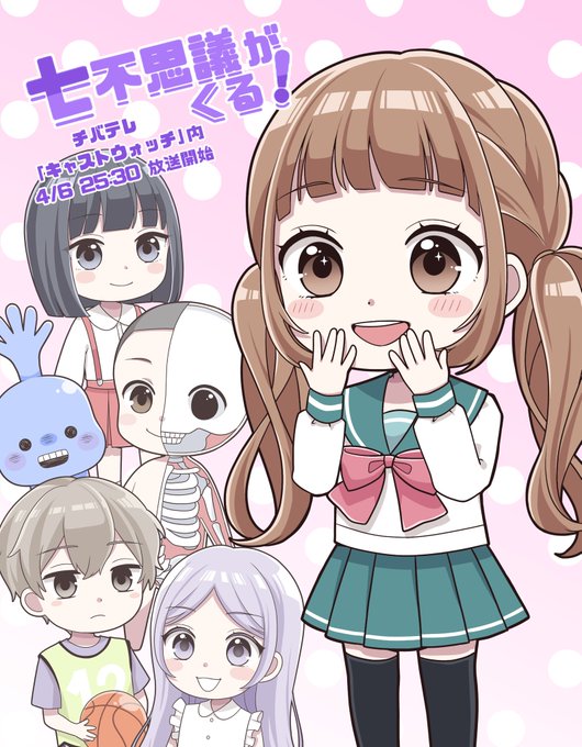 🌷お知らせ🌷 4/6 25:30~チバテレ「キャストウォッチ」内にてショートアニメ「七不思議がくる!」放送開始です!原作・キャラクターデザインを担当いたしました☺️ 主演:矢倉楓子様(元NMB48) 主題歌:♪パラノイア/もふる✖︎クロス様 チバテレ視聴可能な方、是非チェックしてください✨