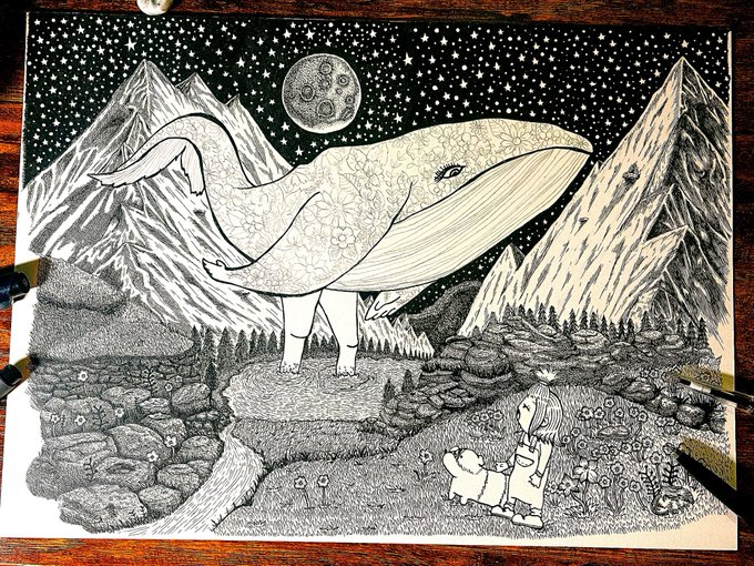 【はるか昔に泳ぐのをやめたクジラ】 世界に一つだけの直筆手書き原画販売開始 #愛しく切ないクジラの壮大な物語 #イラスト #ペン画 詳細はこちら↓ little-hana.booth.pm/items/4876339