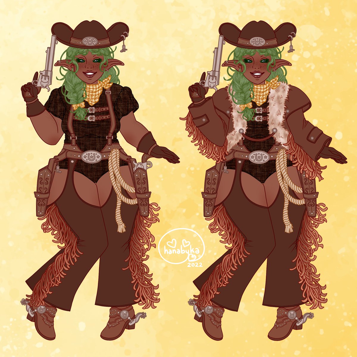 New dnd oc just dropped! 🤠 Meet Annabelle “Dusk Rider” Mountainheart! She’s a wealthy noble who left it all behind to become a rootin tootin shootin cowboy, despite never having seen a cow before. Or ever ridden a horse. Uh oh! #dndart #dnd5e #DnDcharacter