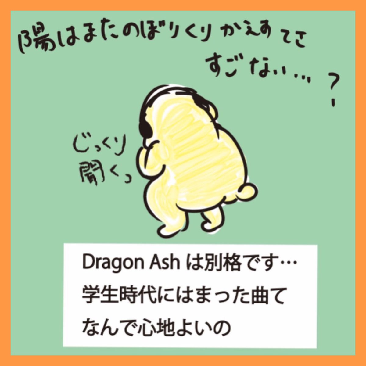 深夜ラジオのCreepy Nuts面白すぎます。ギャルゾンビ…やばい。その影響でヒップホップが好きになりました。 しかし中学に聞いたDragon Ashの陽はまたのぼりくりかえすは自分史上最強です #漫画が読めるハッシュタグ #エッセイ漫画 #クリーピーナッツ
