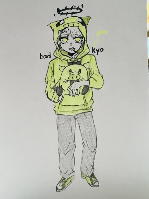 #イラスト貯金豚 今日描いた絵をデジタルでも描いてみた〜! めっちゃうまく描けた🥰