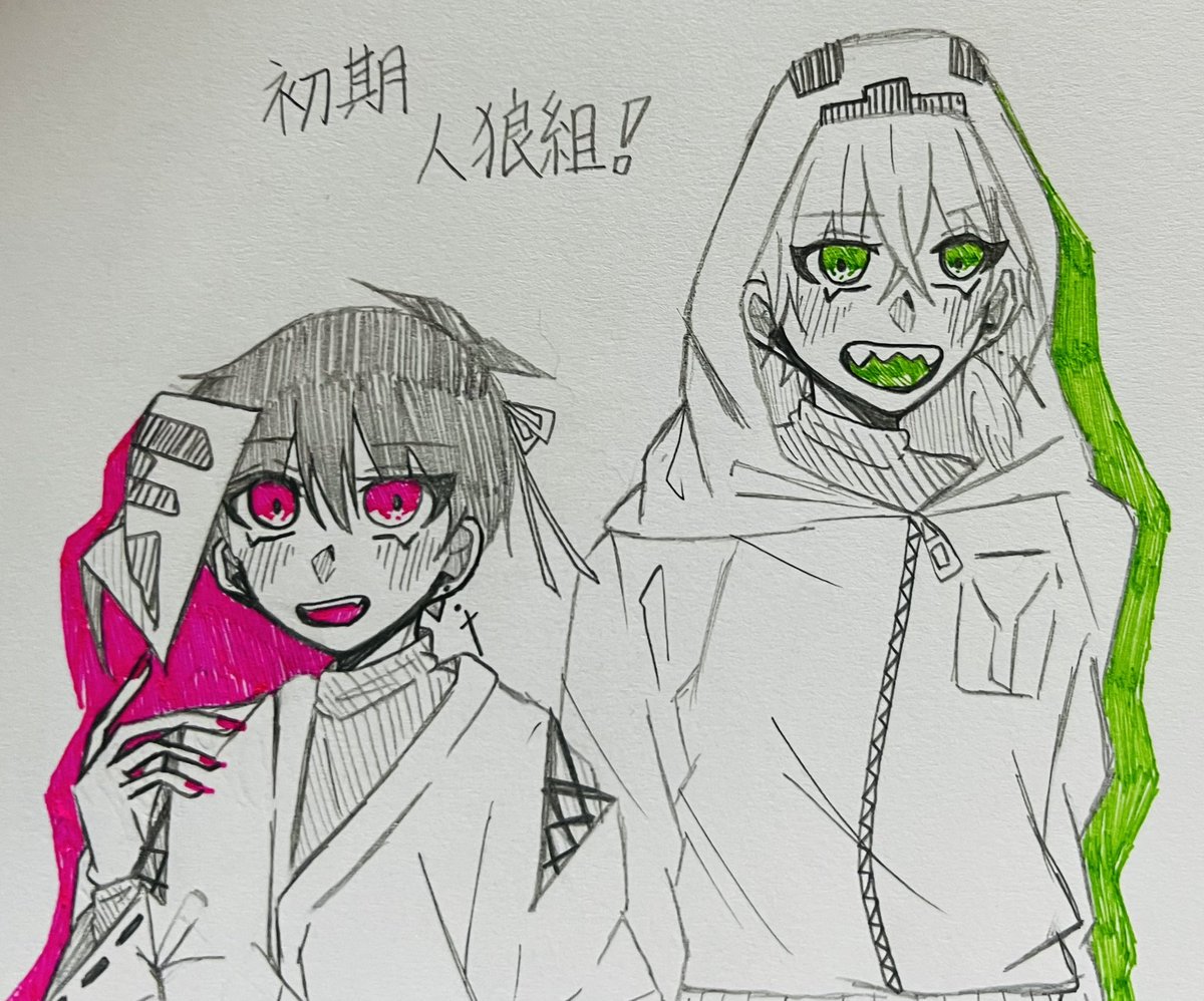 3 29 #wrwrdFA 前に描いた初期人狼組をリメイクしたよ〜! 構図は色々と違うけど… 22/06/13 20:00