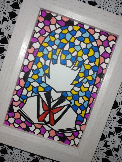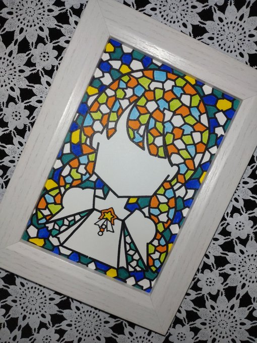 1 4 #イラスト #アナログイラスト ステンドグラス風の女の子37 23/07/15 19:00
