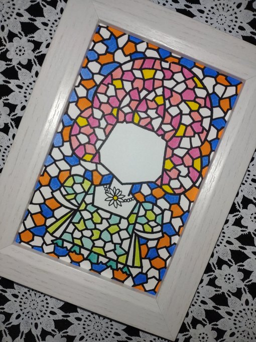 #イラスト #アナログイラスト ステンドグラス風の女の子37
