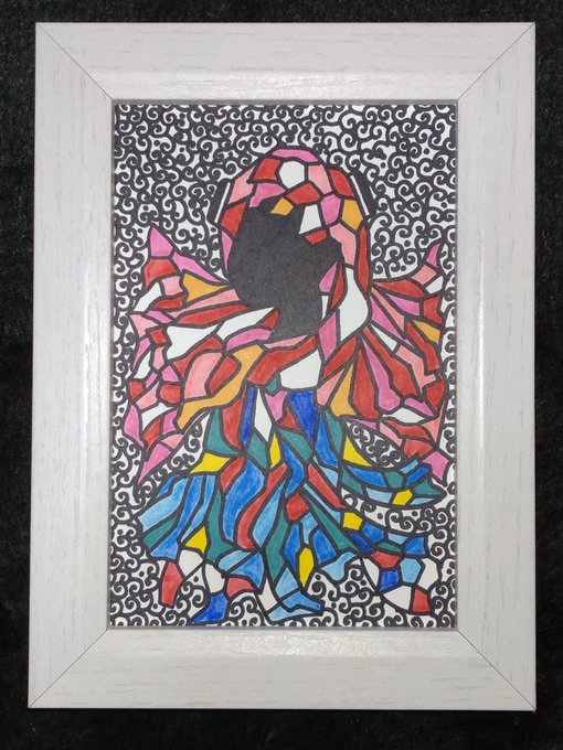 2 14 #アナログ絵 #イラスト ステンドグラス風の女の子21 23/06/20 22:58