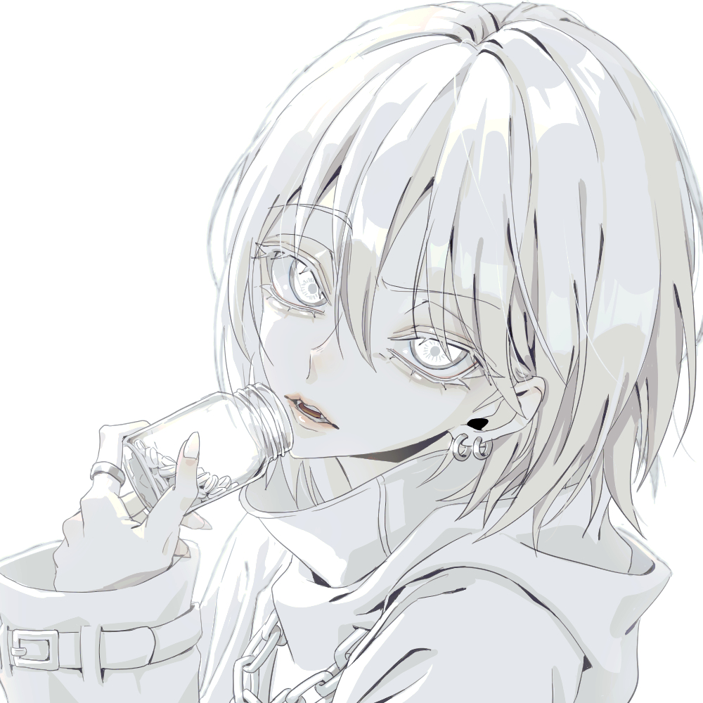 中性的な白い男の子と煙草とお薬🤍🚬🤍💊 #イラスト #創作 #フリーアイコン