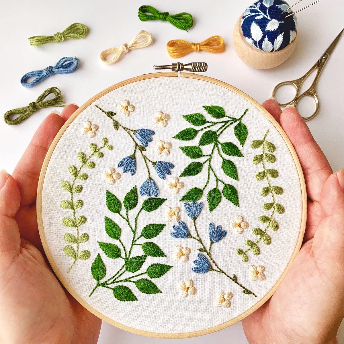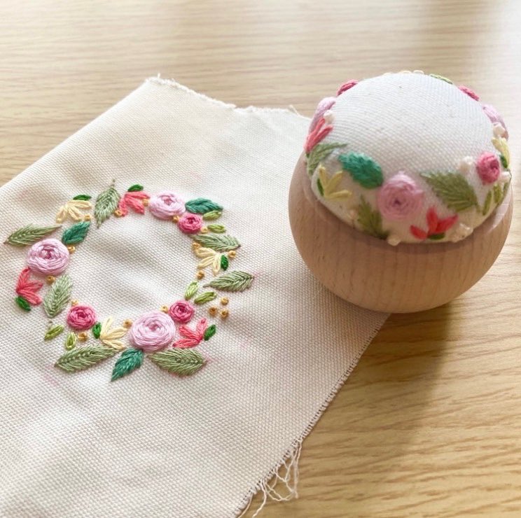 #春の創作クラスタフォロー祭り 春の刺繍はお任せあれ! ふっくら立体感のある刺繍が大好きなはなこまちと申します🌼 刺繍好きさんが楽しめる刺繍キットや、可愛いピンクッションなどを製作しています🪡 minne▼ minne.com/@hanakomachi0