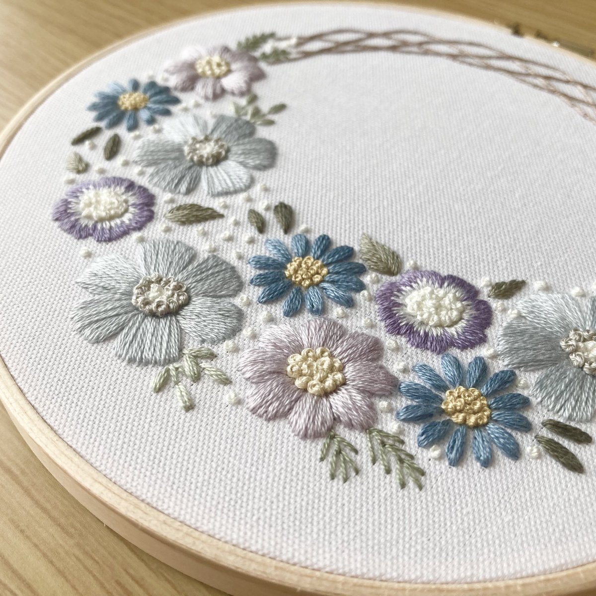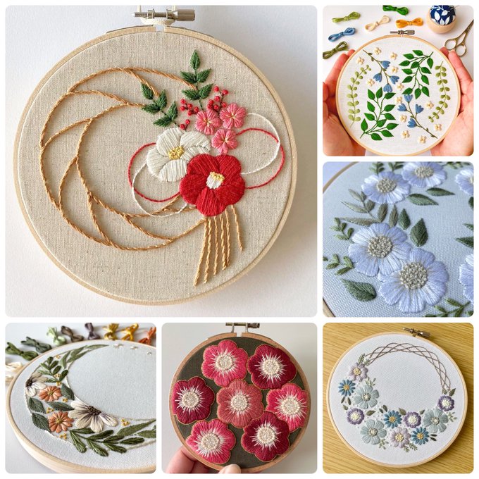 今年最後のシェア企画、展参加します! 植物をメインに刺繍をしています、はなこまちです🌼 ふっくら艶々、彩り豊かな刺繍が大好きです(*´-`)♡ 刺繍が楽しくてオリジナルの刺繍キットも作っちゃいました🪡 noteで図案公開中▼ note.com/hanakomachi/m/… thanks🕊 @Lupopo_cafe 様