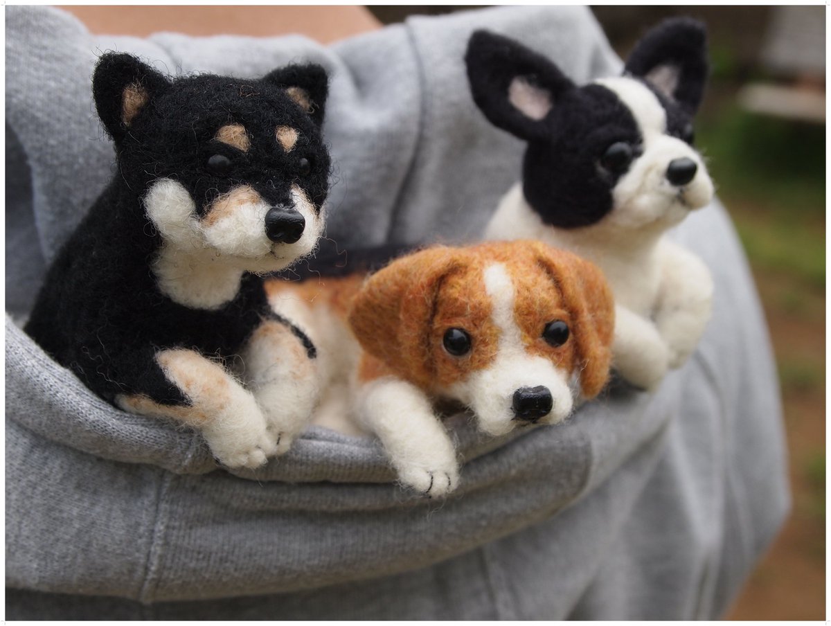 パーカーのフードに入って 楽々お散歩🐶🐾 #羊毛フェルト #羊毛フェルトわんこ #ハンドメイド #ハンドメイド好きさんと繋がりたい #犬 #わんこ #犬好きさんと繋がりたい #柴犬 #フレンチブルドッグ #ビーグル