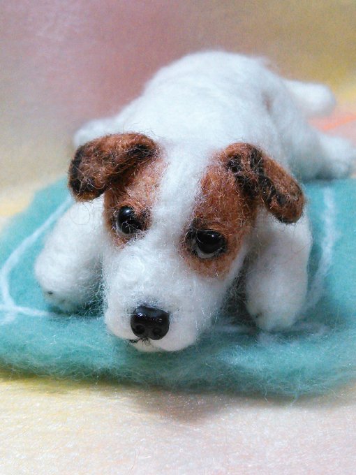 なんだか今日は眠い1日でした😪 チクチクしたけど指に刺しまくり😅 おやすみなさ~い😌🌃💤 #羊毛フェルト #羊毛フェルトわんこ #ハンドメイド好きさんと繋がりたい #犬好きさんと繋がりたい #犬好き #ジャックラッセルテリア