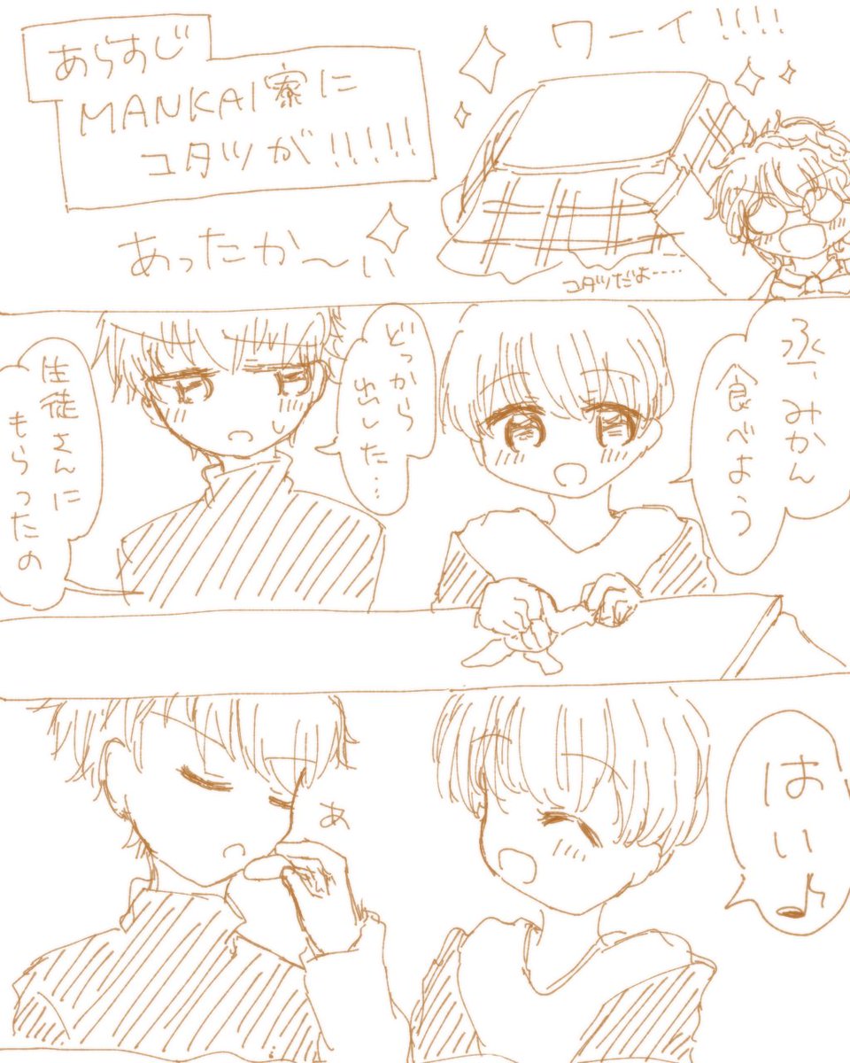 #丞紬版深夜の真剣創作60分一本勝負 (@tstm_a3) お題「こたつ」 お邪魔いたします! こたつ…?である必要があまり……………………ないかもですが みんなであたたまって欲しいの気持ちです