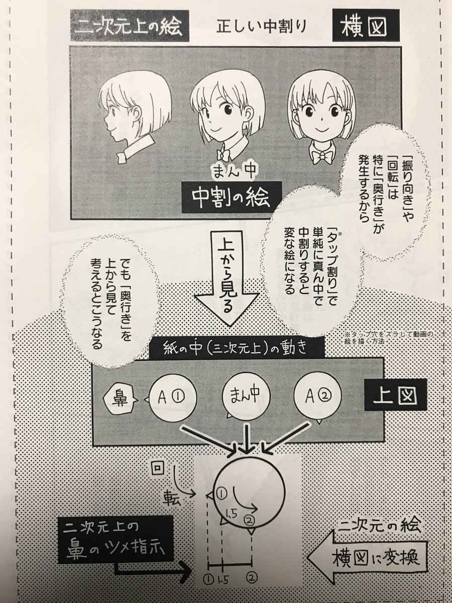 研修が終わった新人アニメーターのみなさん!振り向きのタップ割り方法などが分かる大変便利な漫画「アニメタ!」を読むと少し動画がうまくなるかもしれませんよ!お休み中に読むと本番動画も怖くない!! (なお作者がこの理論に辿り着いたのは2年目動画の頃) 【試し読みbit.ly/2ejaREy 】
