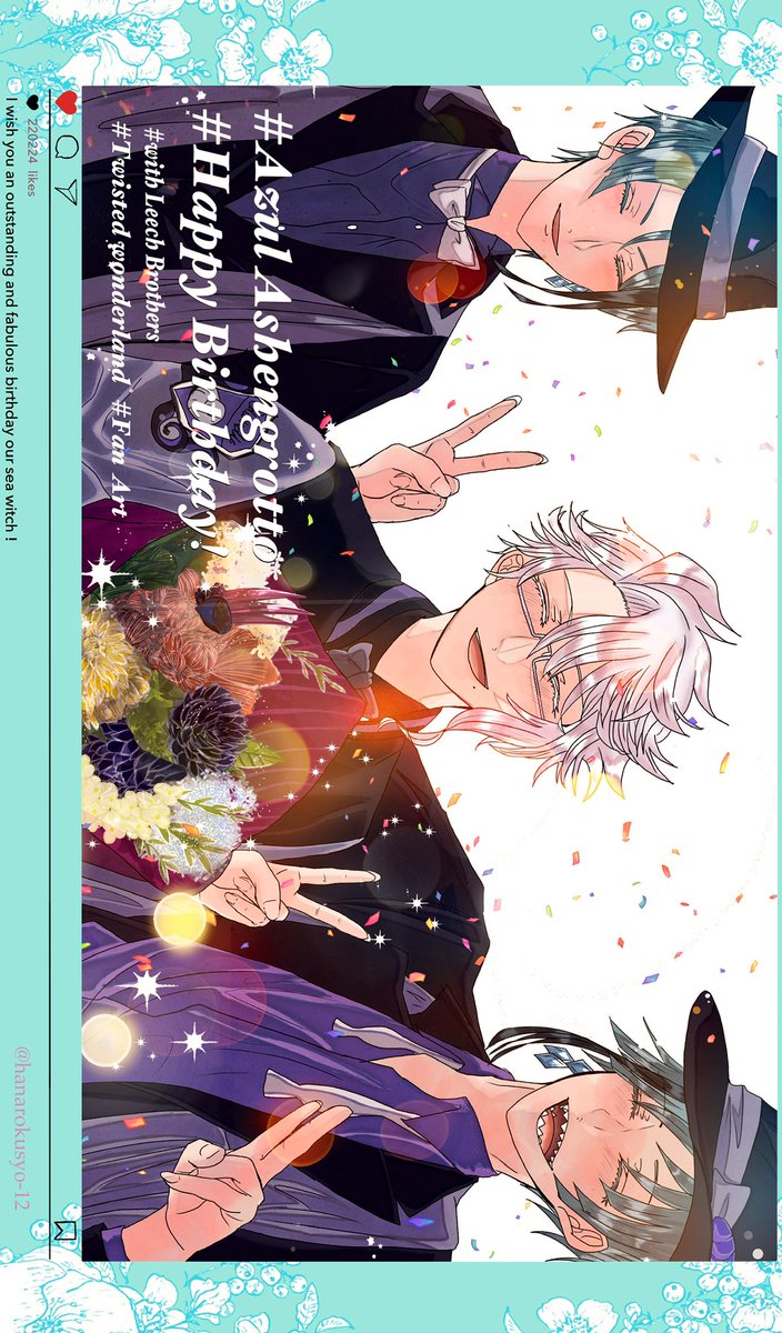 アズール誕生日おめでとう〜!!!🐙いつまでも3人でわちゃわちゃしていてください…🙏 #アズール・アーシェングロット誕生祭2021 #アズール・アーシェングロット生誕祭2021 #ツイステファンアート #twstファンアート