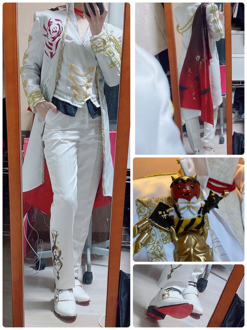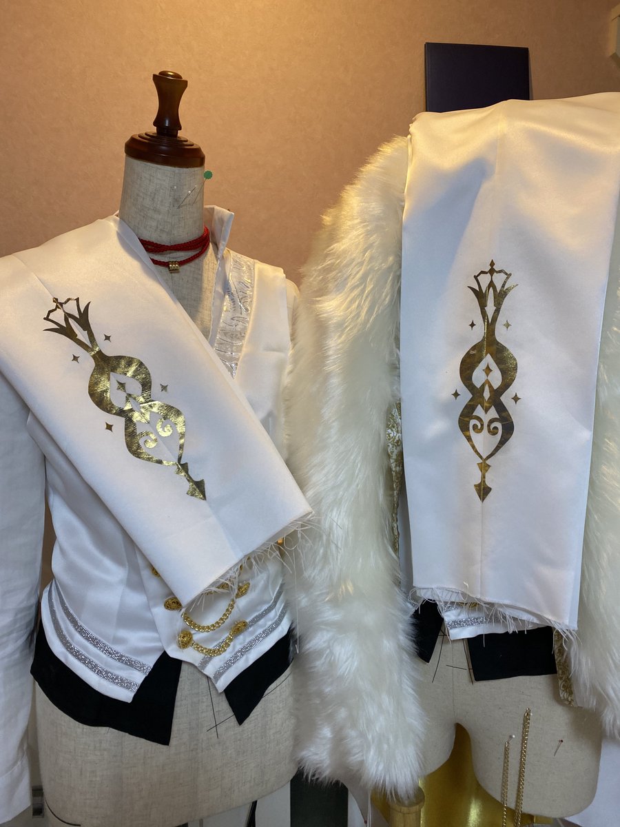 #今年一番気合い入れて作ったコスプレ衣装見せて 自作したもの全て気合い入れてたけど特に頑張ったのはハフバ‼️全員同じ布やブレード使いたくて一緒に買い出し行ったり、柄もデータ作って統一させたり兎に角むちゃくちゃ頭使った💪箔押しも写真綺麗に写ってくれたし靴も加工したよ✨✨
