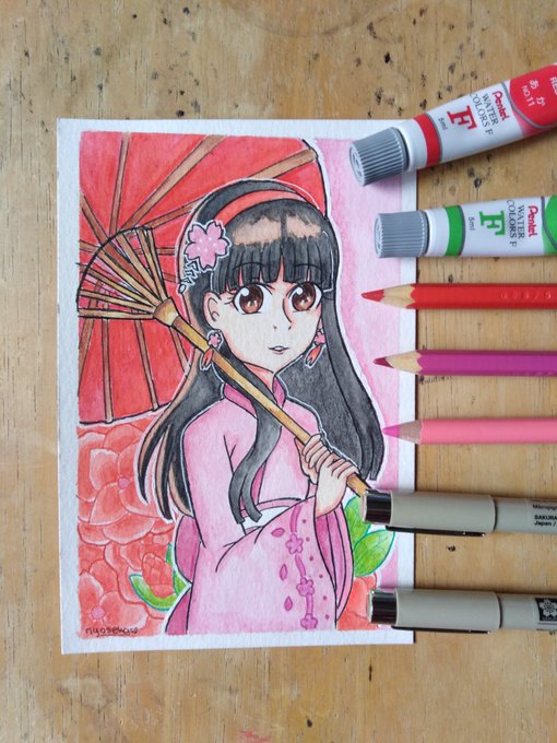 🌸「𝓢𝓪𝓴𝓾𝓻𝓪 𝓕𝓵𝓸𝔀𝓮𝓻 𝓜𝓪𝓲𝓭𝓮𝓷」🌸 I never get time to draw for Yukiko's birthday so I wanted to make this pretty cute postcard (.❛ ᴗ ❛.) 💕💮✨ #Persona4 #Watercolor #ペルソナ4
