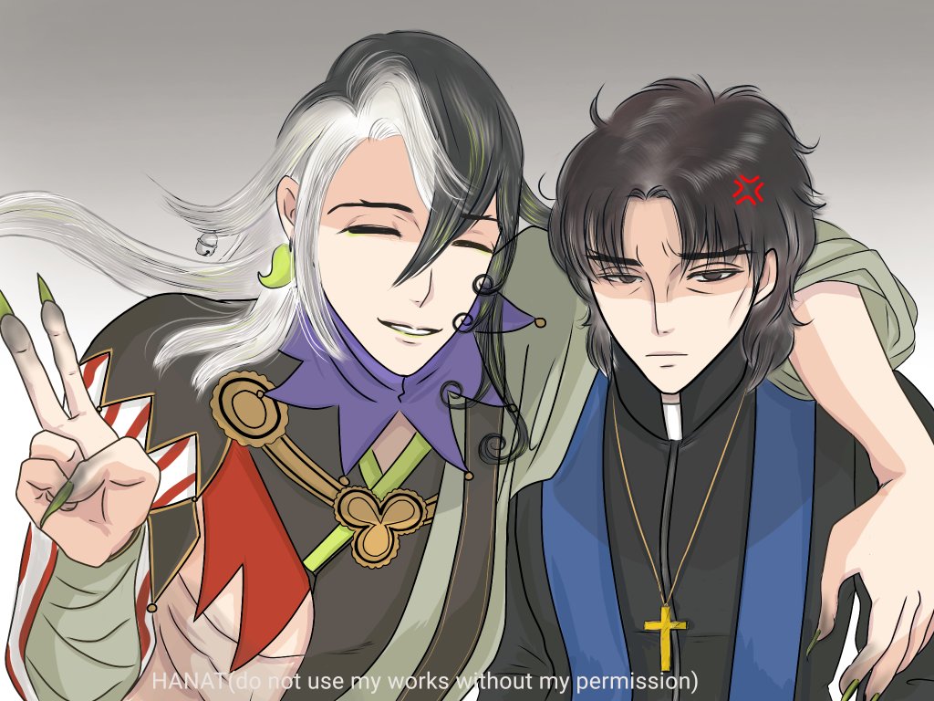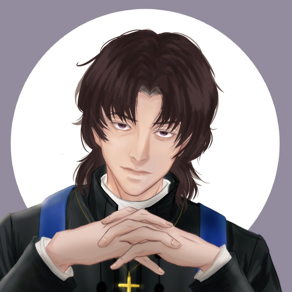 #見た絵師さん強制初投稿の絵と今の絵を比べる ←2021年11月から絵を始めて最初に描いた言峰。全くの初心者だったから試行錯誤して描いた思い出あるイラスト😊 →今のアイコン用に今年描いた絵。結局クリスタ使わずに今もスマホに指で描いてるな私☝️